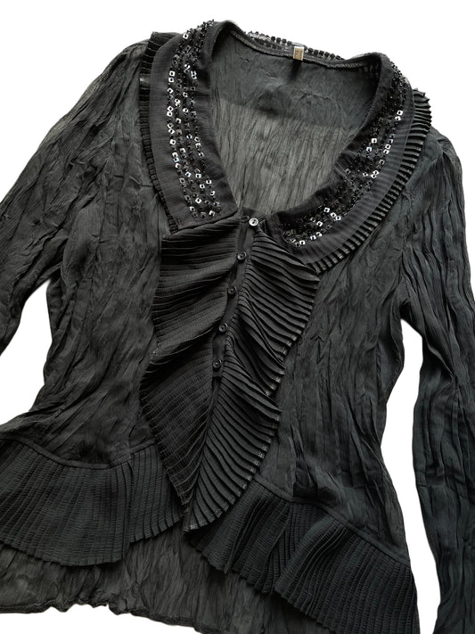 Y2K Vintage Bluse in Transparent mit Glitzer (Frauen L)